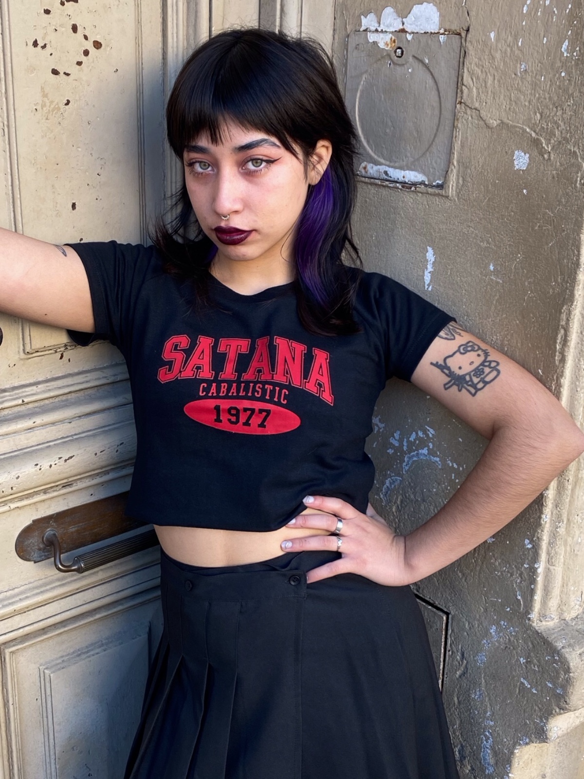 Remera Baby tee Satana estampada